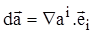 [15] Dans un espace riemanien, il n'existe pas de système de coordonnées s'appliquant à toute cet espace. On peut néanmoins définir localement un repère de Lorentz. La dérivée covariante permet d'évaluer l'évolution d'un champ de vecteurs V en prenant en compte non seulement ses modifications intrinsèques, mais aussi celle du système de coordonnées. Ainsi, si on prend une repère en coordonnées polaires, les deux vecteurs er et eθ ne sont pas constants et dépendent du point étudié. La dérivée covariante permet de prendre en compte ces deux facteurs d'évolution. Les symboles de Christoffel représentent alors l'évolution des vecteurs de base, à travers leur dérivée covariante.